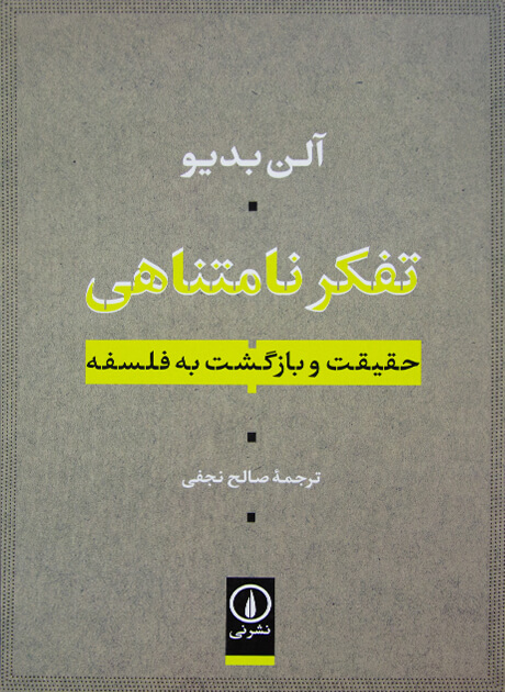 تفکر نامتناهی مجموعهای از جستارهای آلن بدیو را گرد هم آورده است. ویراستارانِ مجموعه این جستارها را به گونهای انتخاب و مرتب کردهاند که طیف علایق بدیو را بازنمایند. دو مقالۀ اول کتاب این دعوی بدیو را به خواننده عرضه میکنند که زمانۀ ما نیازمند نوسازی فلسفه و نیازمند مقولۀ حقیقت است. فصلهای بعدی نمایانگر مداخلههای او در چهار حوزۀ روانکاوی، سیاست، هنر و سینما است. عنوان فرعی کتاب یادآور ژست بنیادی تفکر بدیو است – این «بازگشت به فلسفه» در تقابل با جریانهای مسلط در فلسفۀ معاصر مطرح میشود که در کار بدیو در قالب سه گرایش اصلی تحلیل شدهاند: فلسفۀ هرمنوتیکیِ هایدگر و گادامر؛ مکتب تحلیلیِ ویتگنشتاین و کارنَپ؛ و پستمدرنیسمِ دریدا و لیوتار.